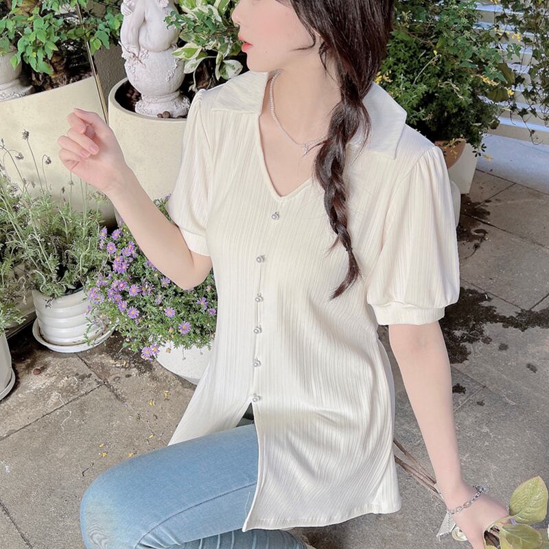 【送料無料】 トップス ブラウス カットソー ロング丈 体型カバー ふんわり袖 バルーンスリーブ 半袖 キレイめ 抜け感 20代 30代 40代 通勤 通学 オフィス お出掛け 春夏
