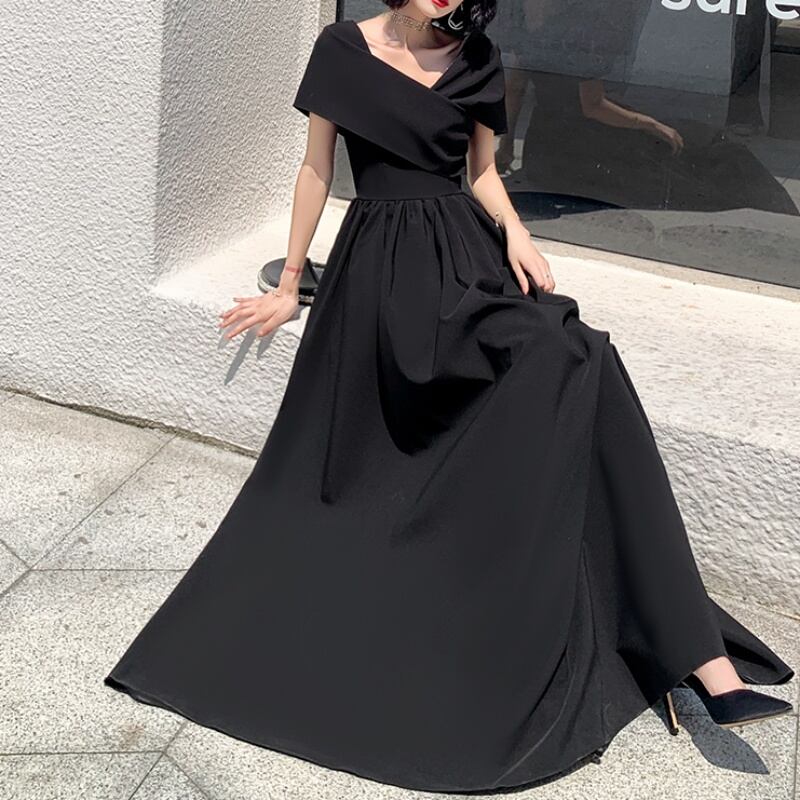 【送料無料】 パーティードレス ワンピース ドレス ロング マキシ レディース ハイウエスト 袖あり 半袖 カシュクール Vネック 大人可愛い セクシー エレガント フォーマル 大きいサイズ 2XL 3XL 10代 20代 30代 ブラック 黒 パーティー 2次会 結婚式 ブライダル ウエディング 夜デート お出かけ ディナー