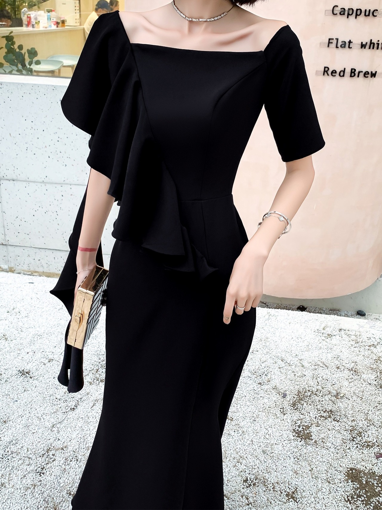 【送料無料】 レディース パーティードレス ワンピース ドレス スカート ハイウエスト 袖あり 半袖 スクエアネック フリル スリット 大人可愛い セクシー エレガント シンプル キレイめ フォーマル 大きいサイズ 2XL 3XL 10代 20代 30代 ネイビー 紺 ブラック 黒 ホワイト 白 パーティー 2次会 結婚式 ブライダル ウエディング お呼ばれ 挙式 成人式 同窓会 謝恩会 大学生 服装 入学式 卒業式 夜デート お出かけ ディナー