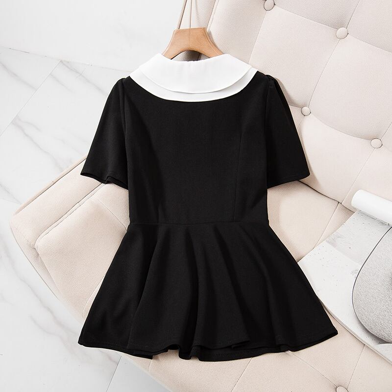 【送料無料】 レディース トップス ブラウス チュニック モノトーン ブラック ホワイト 黒 白 半袖 上品 フェミニン かわいい 大人かわいい キュート 体型カバー ウエストシェイプ 20代 30代 通勤 通学 オフィス お出掛け 春夏