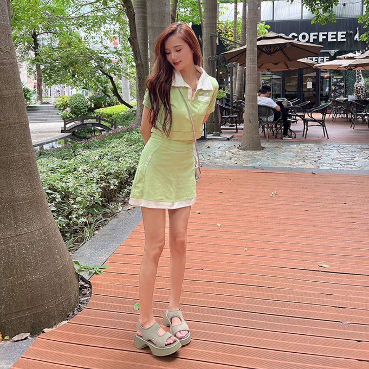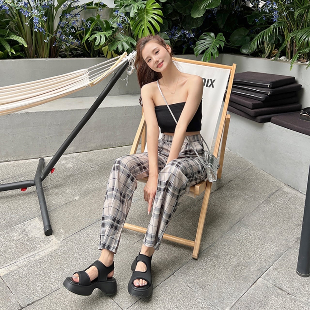 コーディネートをカジュアルダウンしてくれるので、きれいめスタイルに合わせるとトレンドライクな印象に。