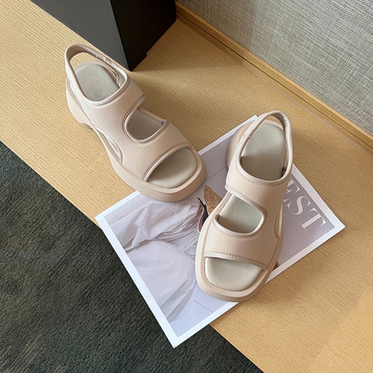 厚底ボリュームソールのスポーティーなサンダル。
