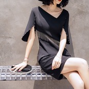 【送料無料】 レディース パーティードレス ワンピース ドレス スカート ハイウエスト Vネック カシュクール 袖あり 半袖 袖スリット 体型カバー 二の腕カバー ミディアム ミディ タイトスカート ウエストマーク 大人可愛い セクシー エレガント シンプル キレイめ フォーマル 大きいサイズ 2XL 3XL 10代 20代 30代 ブラック 黒 パーティー 2次会 結婚式 ブライダル ウエディング お呼ばれ 成人式 同窓会 謝恩会 大学生 服装 入学式 卒業式 夜デート お出かけ ディナー