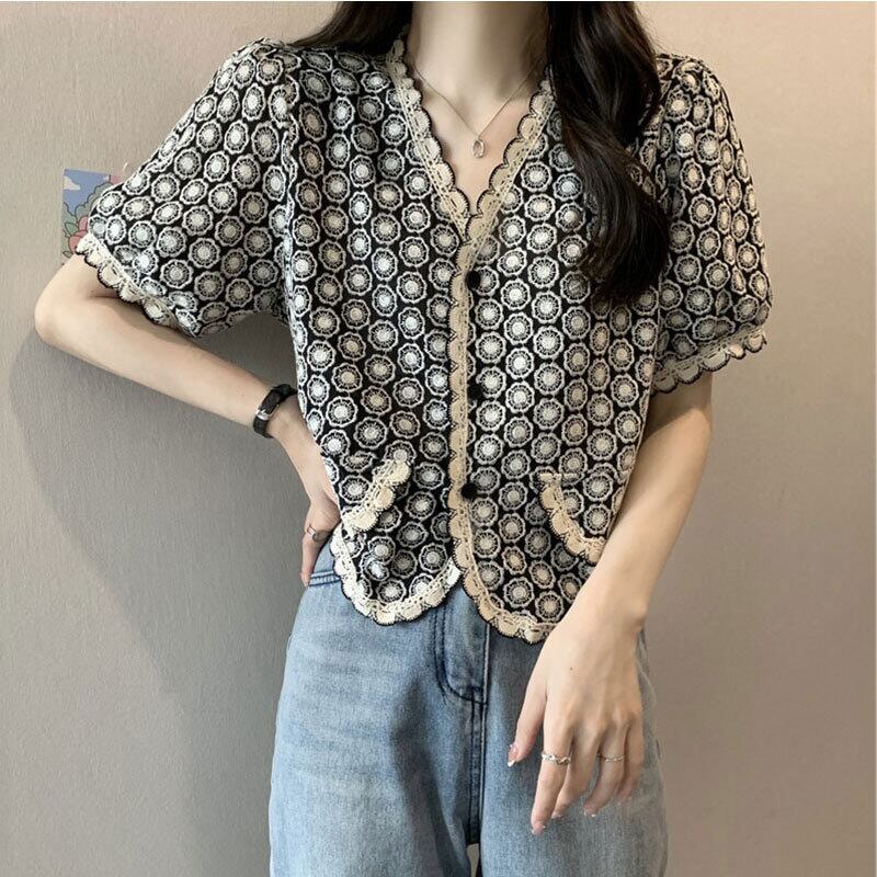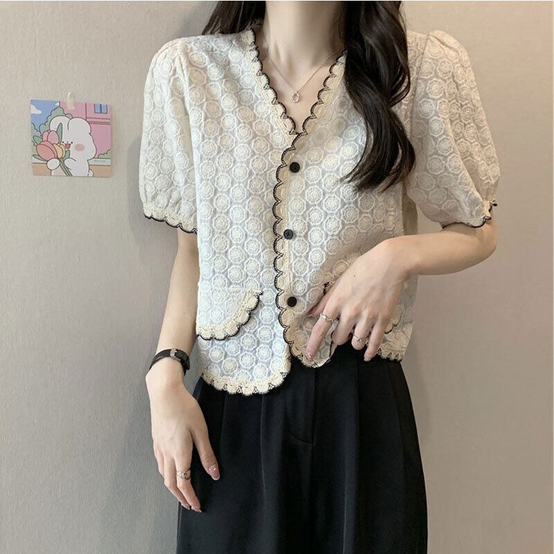 【送料無料】 レディース トップス ブラウス Vネック キレイめ 上品 レトロ 大人 カラー切り替え ふんわり袖 半袖 ベージュ 黒 白 ブラック お茶会 ランチ 女子会 20代 30代 40代 通勤 通学 オフィス お出掛け 春夏