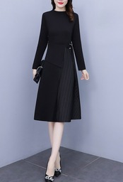 スカート部分がアシンメトリーな無地✕ストライプ切り替えの黒ワンピース♡