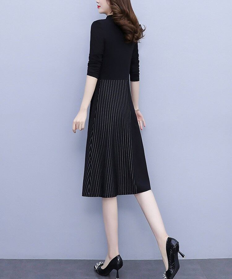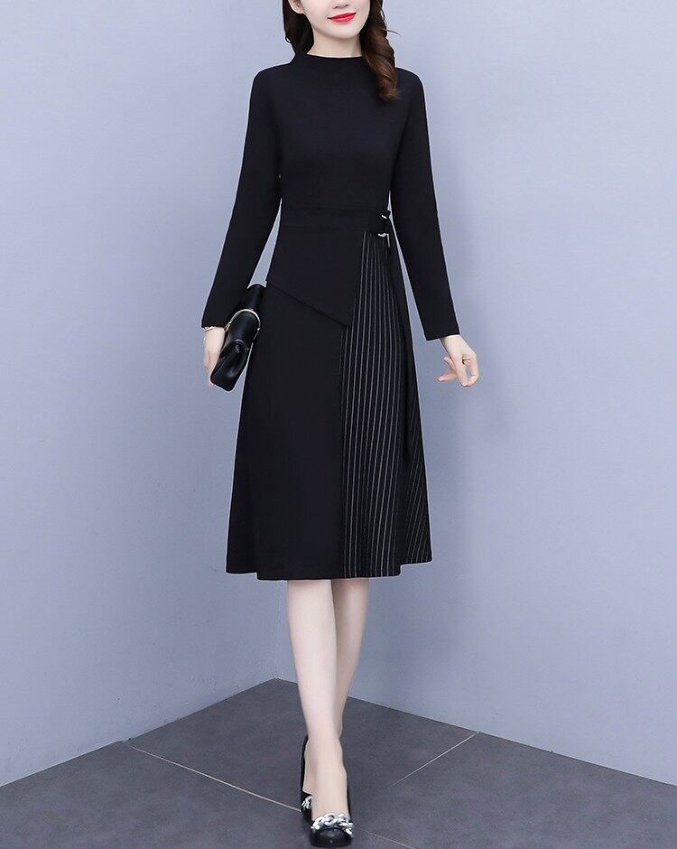 【送料無料】 レディース ワンピース フレアワンピース ワンピドレス ひざ丈 ミディアム丈 袖あり 長袖 フレア Aライン アシンメトリー 切り替えデザイン 大人可愛い きれいめ シンプル カジュアル 大人 上品 おしゃれ お洒落 大人女子 こなれ感 主役級 存在感 柄 ストライプ 秋 冬 10代 20代 30代 女性用 ママ デート お出かけ 女子会 休日 着回し 普段使い 韓国 韓国系 楽ちん 定番 M L XL 2XL 3XL 4XL 5XL 大きいサイズ 大きい 大きめ ビッグサイズ ゆったり