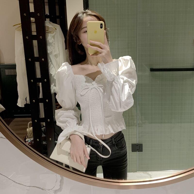 【送料無料】 レディース トップス ブラウス カットソー カジュアル オフショルダー スクエアネック クロップド ギャザー キュート セクシー リボン ホワイト ブラック 白 黒 20代 30代 通勤 通学 お出掛け 女子会 春 秋冬