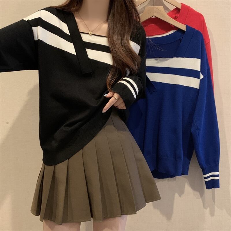 【送料無料】 レディース トップス ニット ボーダー アシンメトリー こなれ感 カジュアル シンプル キュート 大人かわいい レッド ブルー ブラック 赤 青 黒 長袖 20代 30代 通勤 通学 お出掛け 女子会 お呼ばれ 秋冬