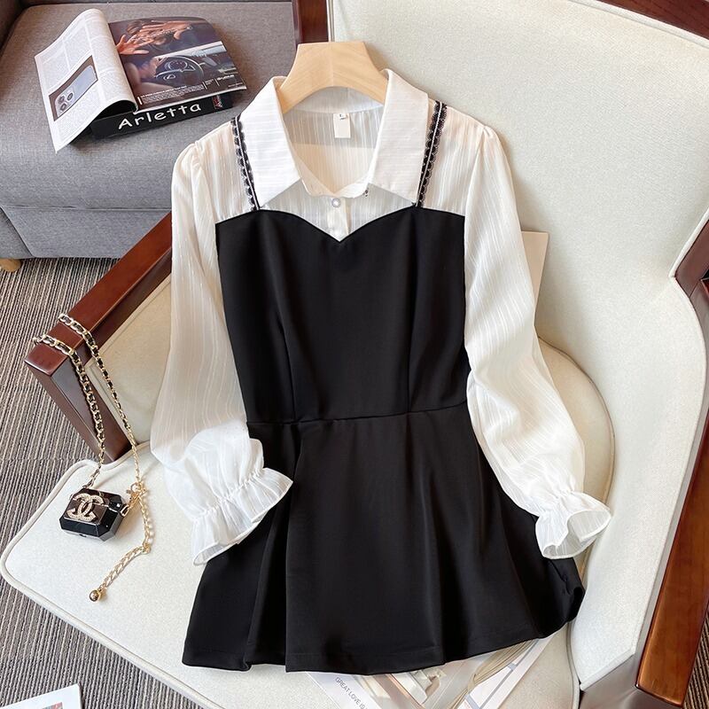 【送料無料】 レディース トップス ブラウス 重ね着風 キャミソール風 チュニック ペプラム ギャザー カジュアル きれいめ キュート 大人かわいい 白 青 黒 ホワイト ブルー 20代 30代 40代 通勤 通学 お出掛け 女子会 お呼ばれ 秋冬