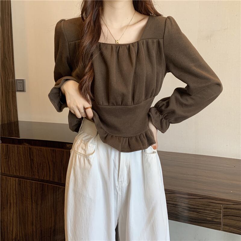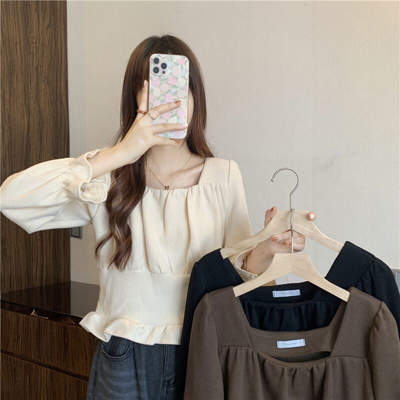 【送料無料】 レディース トップス ブラウス スクエアネック ギャザー ウエストシェイプ 上品 シンプル きれいめ 大人かわいい こなれ感 体型カバー 長袖 ベージュ ブラウン ブラック 茶色 黒 20代 30代 40代 通勤 通学 オフィス お出掛け 女子会 お呼ばれ 秋冬