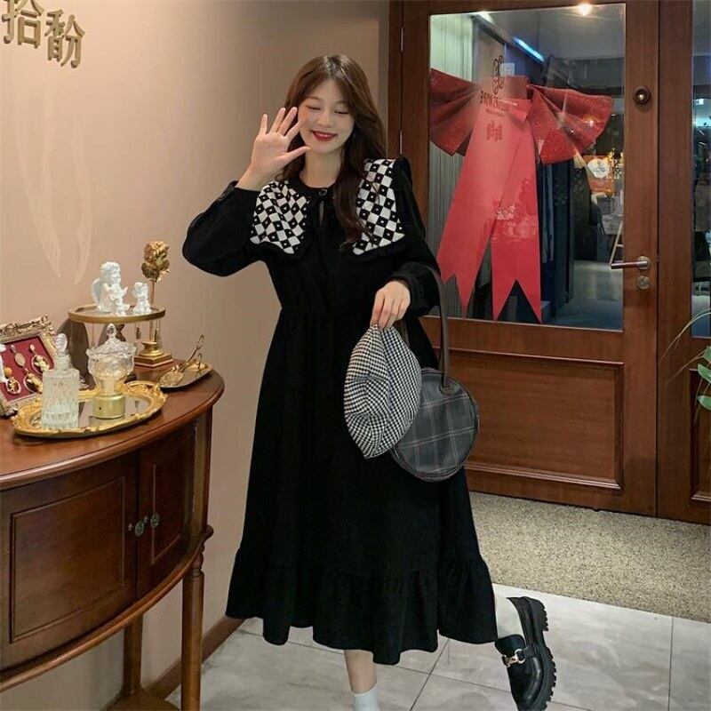 【送料無料】 レディース ワンピース ワンピドレス 膝下 ロング 袖あり 長袖 フレア Aライン かわいい 大人可愛い 大人 上品 おしゃれ お洒落 大人女子 こなれ感 主役級 無地 チェック柄 秋 冬 10代 20代 30代 女性用 ママ デート お出かけ 女子会 休日 着回し 普段使い 韓国 韓国系 楽ちん 定番 M L XL 2XL 3XL 4XL 大きいサイズ 大きい 大きめ ビッグサイズ ゆったり ゆる 黒 ブラック 茶色 ブラウン 大人カラー 秋カラー