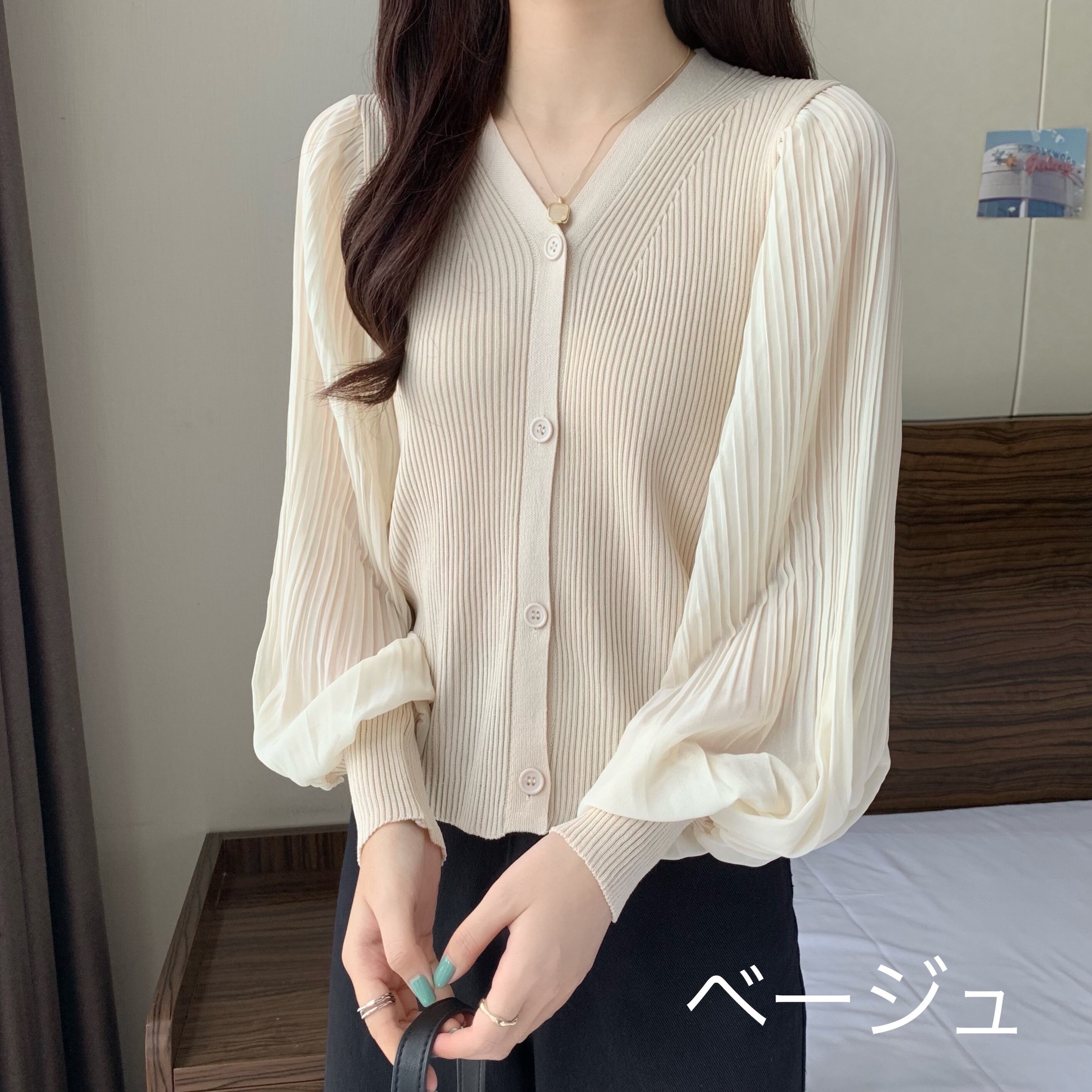 【送料無料】 レディース トップス ニット ブラウス Vネック リブ シアー こなれ感 大人可愛い きれいめ 上品 シンプル ふんわり袖 抜け感 長袖 ホワイト ベージュ ブラック 白 黒 20代 30代 40代 通勤 通学 オフィス お出掛け 女子会 お呼ばれ 秋冬