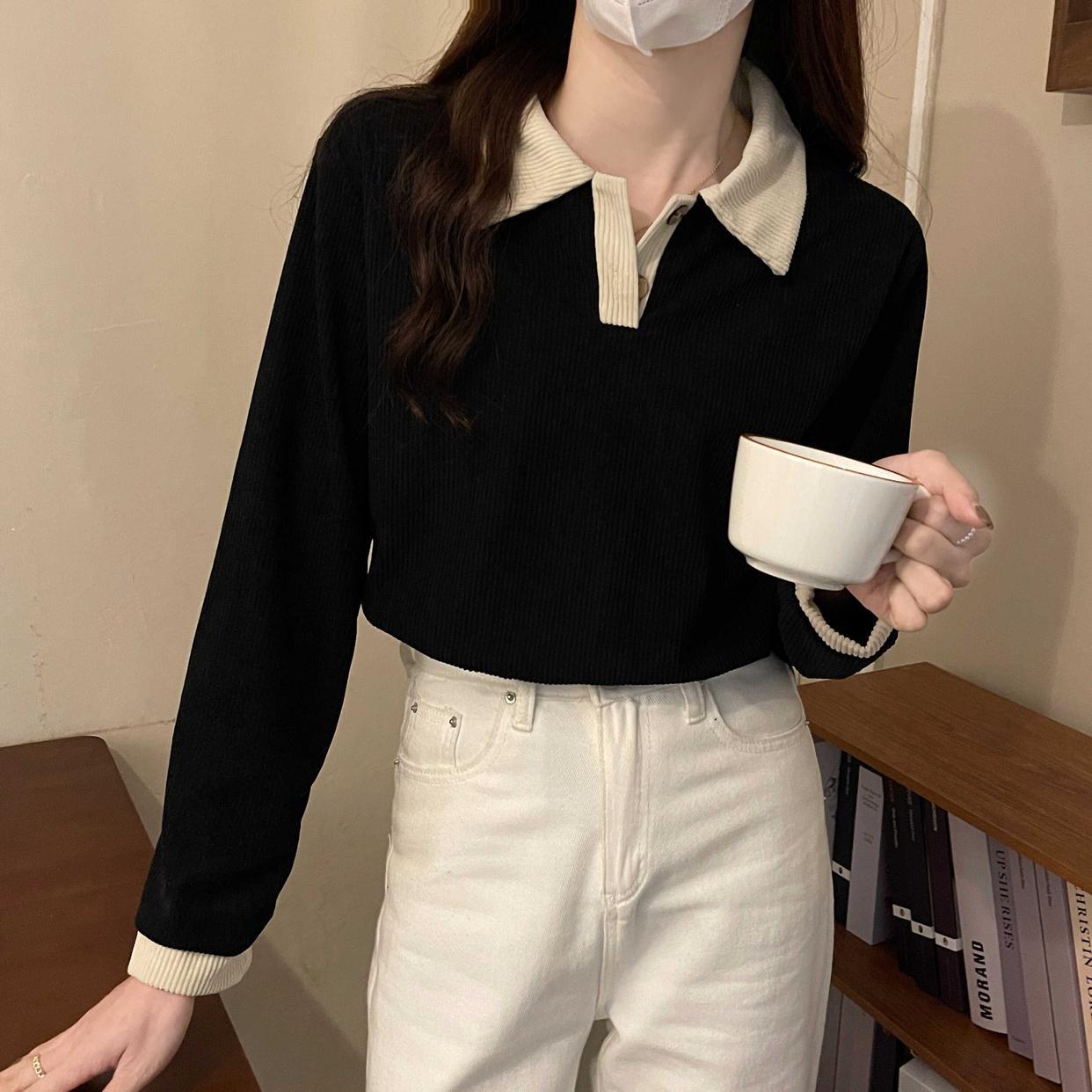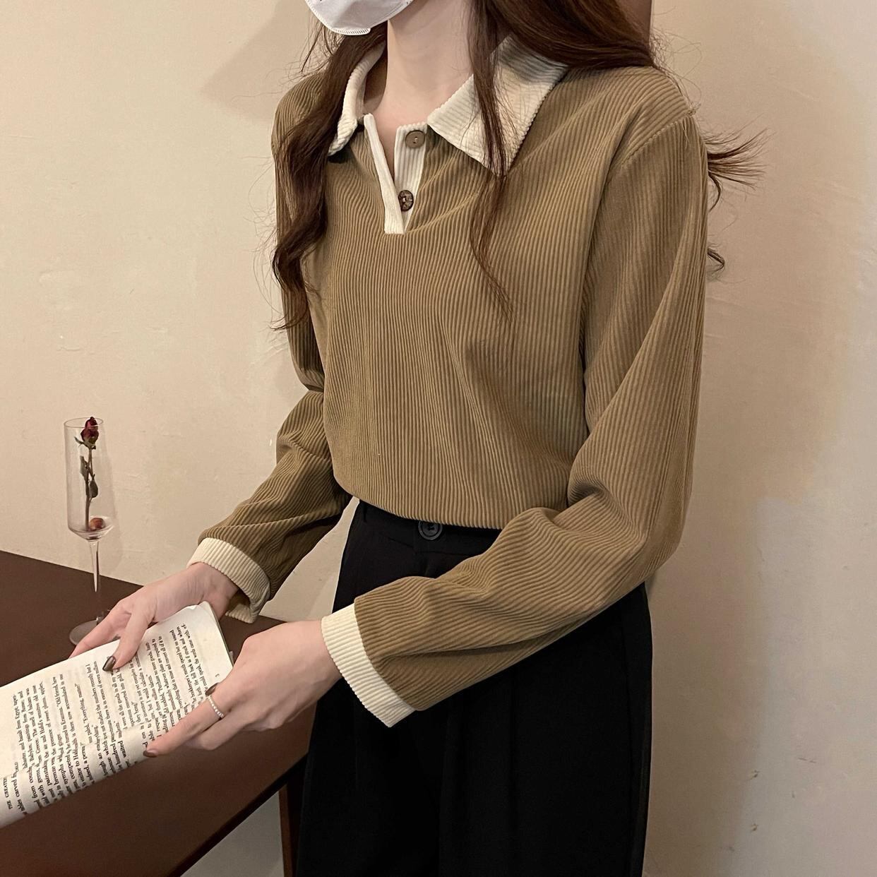 【送料無料】 レディース トップス カットソー ポロシャツ スキッパー カラー切り替え カジュアル シンプル きれいめ ベーシック 長袖 ベージュ カーキ ブラック 黒 20代 30代 40代 通勤 通学 オフィス お出掛け 女子会 お呼ばれ 秋冬