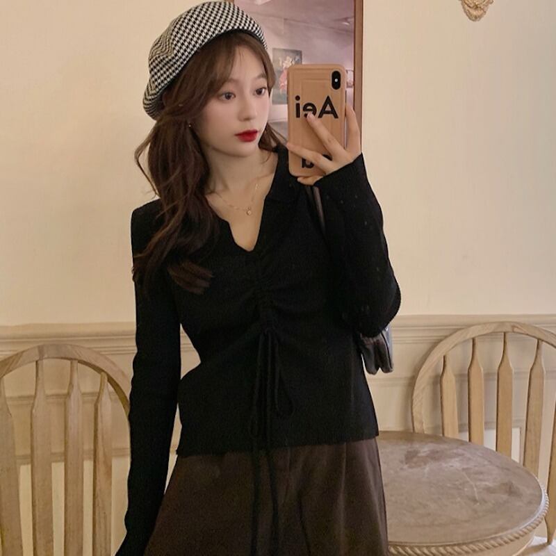 【送料無料】 レディース トップス カットソー Vネック シャーリング リボン シンプル カジュアル きれいめ ゆったり こなれ感 体型カバー ベーシック ワンマイル リラックス 長袖ベージュ ブラック 黒 20代 30代 40代 通勤 通学 お出掛け 女子会 お呼ばれ 秋冬
