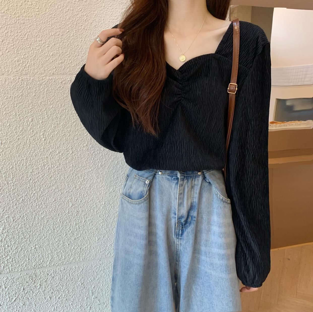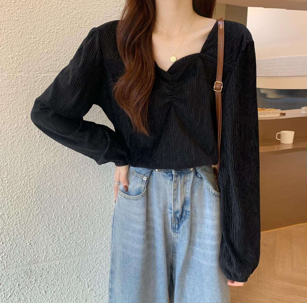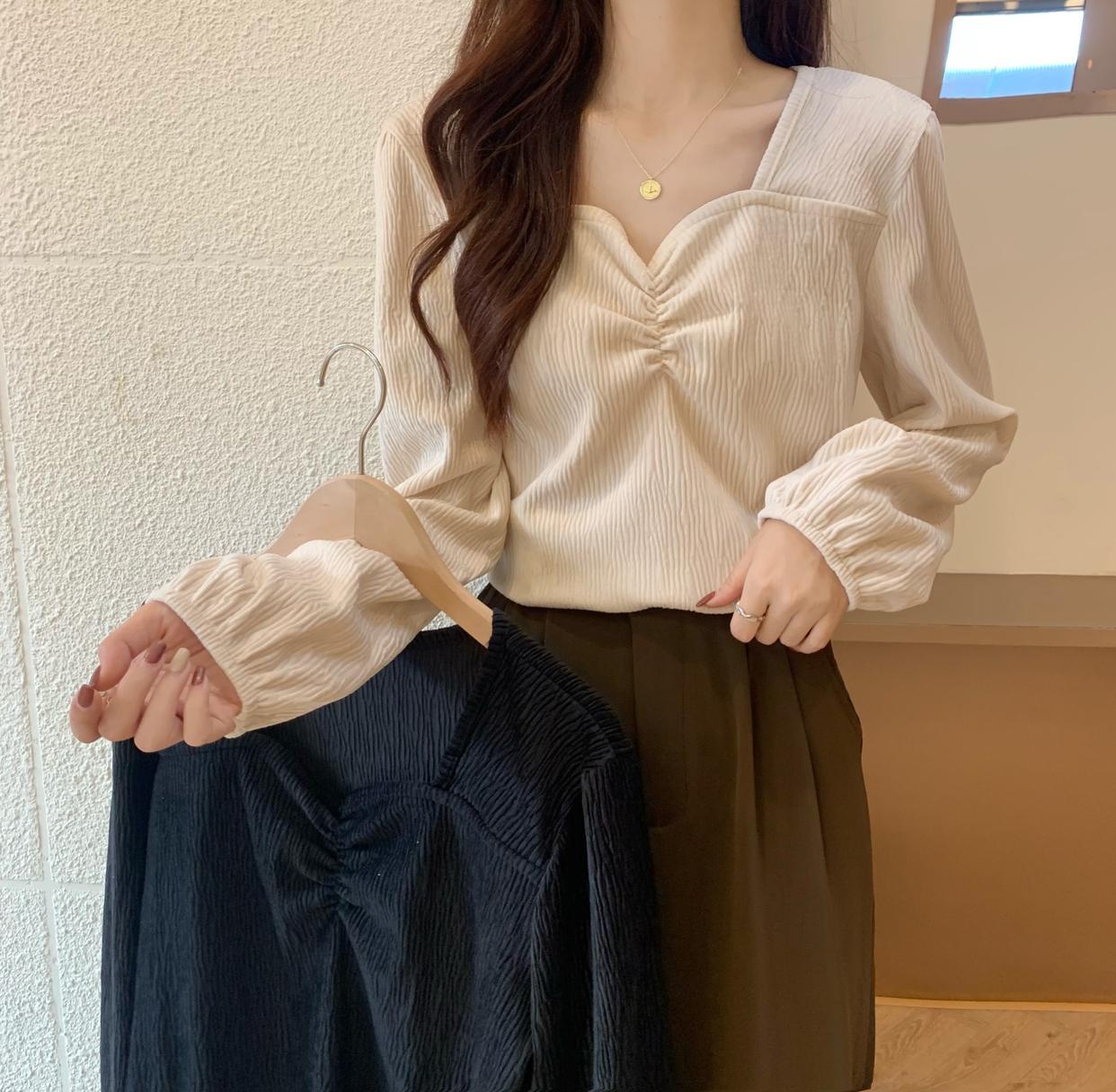 【送料無料】 レディース トップス カットソー ブラウス シャーリング ふんわり袖 上品 きれいめ シンプル 大人かわいい 長袖 ホワイト ブラック 白 黒 デザイン 20代 30代 40代 通勤 通学 オフィス お出掛け 女子会 お呼ばれ 秋冬