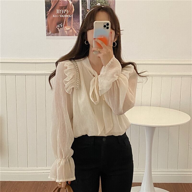 【送料無料】 レディース トップス ブラウス シアー ギャザー レース リボン きれいめ 上品 姫 大人かわいい ふんわり袖 キュート 長袖 ホワイト オフホワイト ベージュ 20代 30代 40代 通勤 通学 オフィス お出掛け 女子会 お呼ばれ 秋冬