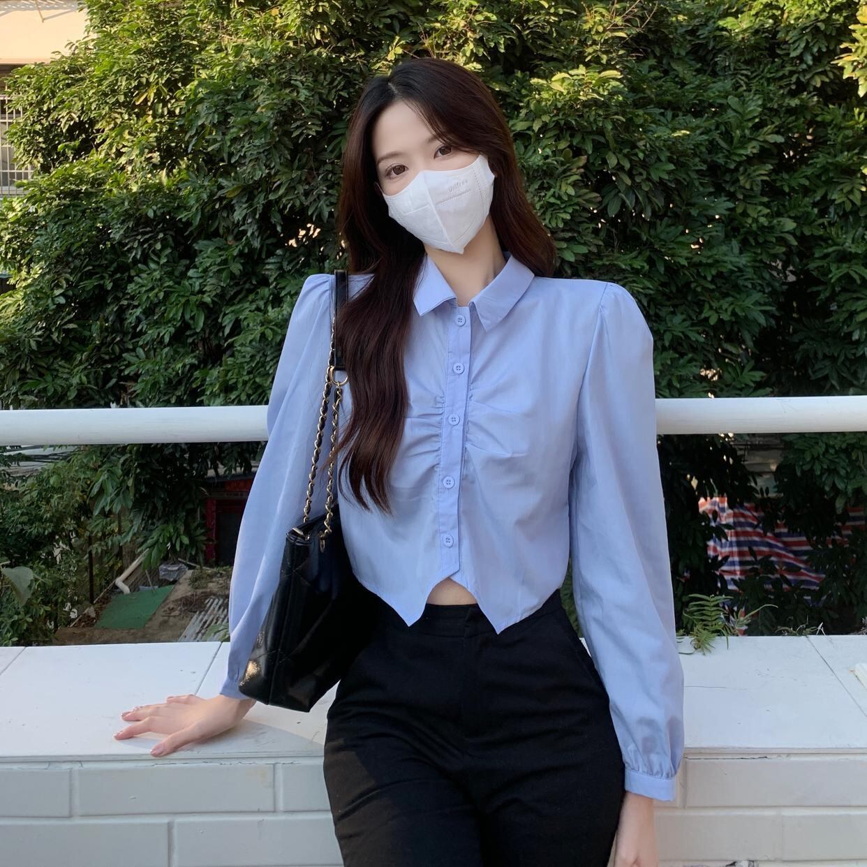 クロップド丈のブラウス