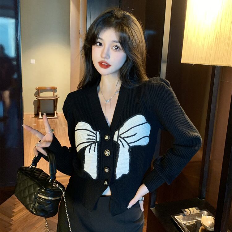 【送料無料】 レディース トップス ニット Vネック カーデ カーディガン リボン キュート かわいい 大人かわいい カジュアル キレイめ 上品 長袖 ブラック 黒 20代 30代 40代 通勤 通学 オフィス お出掛け 女子会 お呼ばれ 秋冬