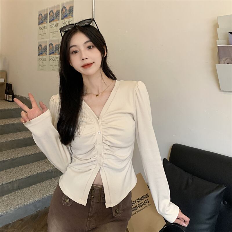 【送料無料】 レディース トップス カットソー シャーリング Vネック キレイめ カジュアル シンプル スタイルアップ ショート丈 抜け感 長袖 ブラック ベージュ 20代 30代 40代 通勤 通学 オフィス お出掛け 女子会 お呼ばれ 秋冬 春