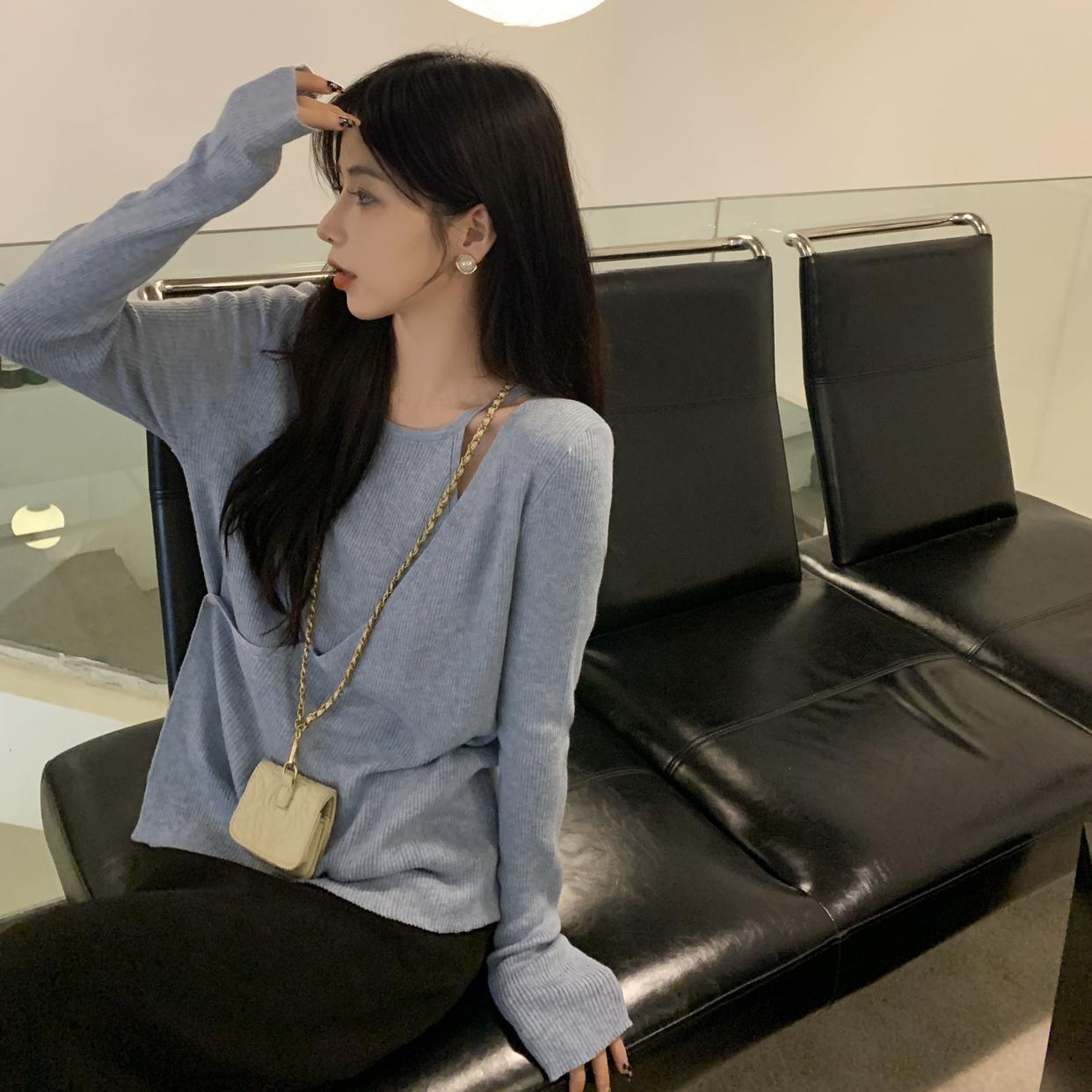 【送料無料】 レディース トップス ニット アシンメトリー 重ね着風 デザイントップス 抜け感 おしゃれ 大人かわいい キレイめ シンプル カジュアル 長袖 グレー ピンク ブラック 黒 20代 30代 40代 通勤 通学 オフィス お出掛け 女子会 お呼ばれ 秋冬