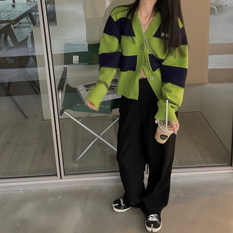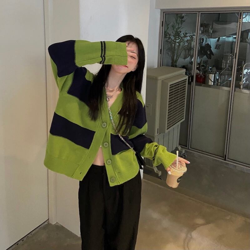 【送料無料】 レディース トップス ニット カーディガン カーデ ボーダー カジュアル シンプル ベーシック ゆったり 体型カバー こなれ感 長袖 グリーン ブラック 緑 黒 20代 30代 40代 通勤 通学 お出掛け 女子会 お呼ばれ 秋冬