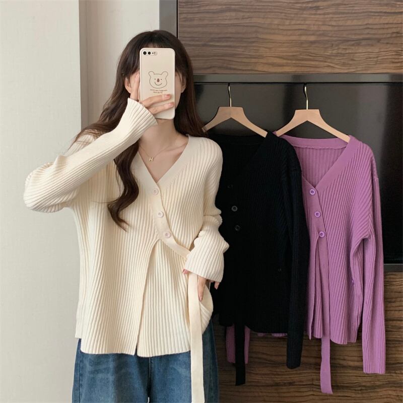 【送料無料】 レディース トップス カットソー アシンメトリー カシュクール風 シンプル カジュアル リブ こなれ感 リラックス 体型カバー 長袖 ベージュ パープル ブラック 紫 黒 20代 30代 40代 通勤 通学 お出掛け 女子会 お呼ばれ 春夏