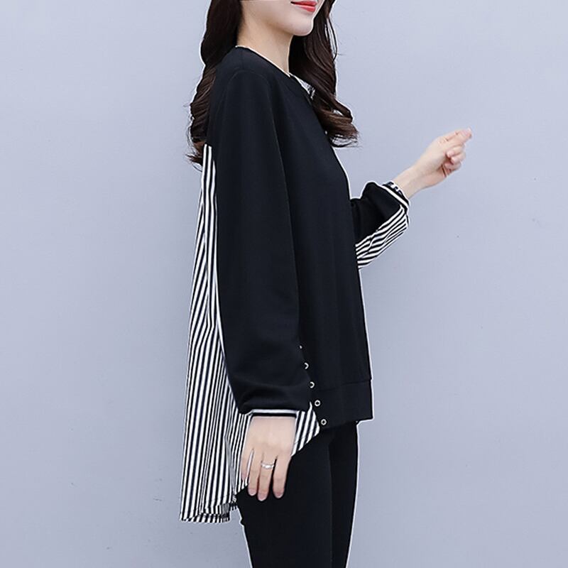【送料無料】 レディース トップス カットソー ドッキング シンプル カジュアル 体型カバー 細身せ スタイルアップ モノトーン ストライプ ゆったり フレア Aライン 長袖 白 黒 ホワイト ブラック 30代 40代 通勤 通学 オフィス お出掛け 女子会 お呼ばれ 春秋