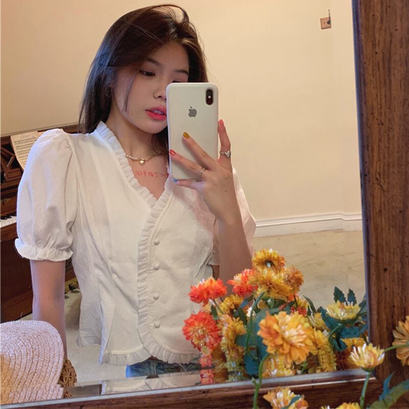 【送料無料】 レディース トップス ブラウス フェミニン アシンメトリー オーバーブラウス フリル レース キュート レトロ きれいめ 大人かわいい フラワー プリント ボタニカル 半袖 グリーン ホワイト 緑 白 20代 30代 通勤 通学 オフィス お出掛け 女子会 お呼ばれ 春夏