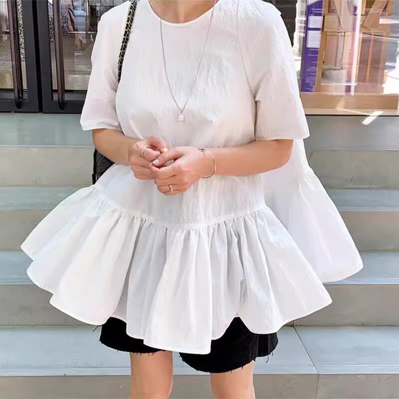【送料無料】 レディース トップス ブラウス チュニック シンプル カジュアル ゆったり 体型カバー きれいめ ギャザー こなれ感 半袖 5分袖 半端袖 ホワイト 白 20代 30代 40代 通勤 通学 オフィス お出掛け 女子会 お呼ばれ 春夏
