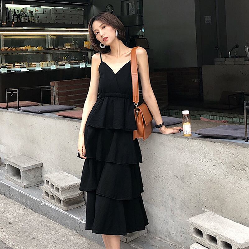【送料無料】 レディース ドレス パーティー ドレス キャミドレス キャミワンピ ティアード ロング丈 抜け感 おしゃれ 大人可愛い 大人 シンプル きれいめ セクシー ベーシック 華やか キュート ブラック ホワイト 黒 白 結婚式 2次会 お呼ばれ パーティー お食事会 ディナー ランチ お出かけ 春夏
