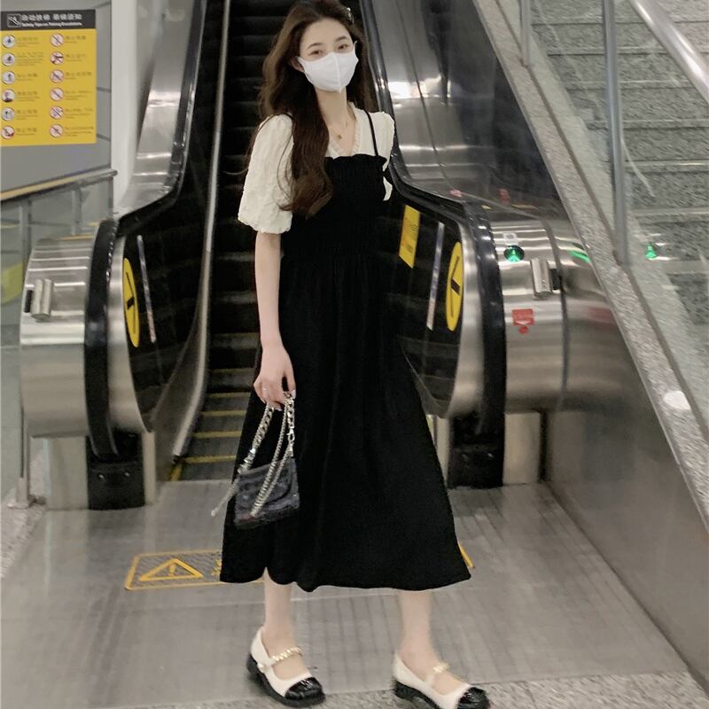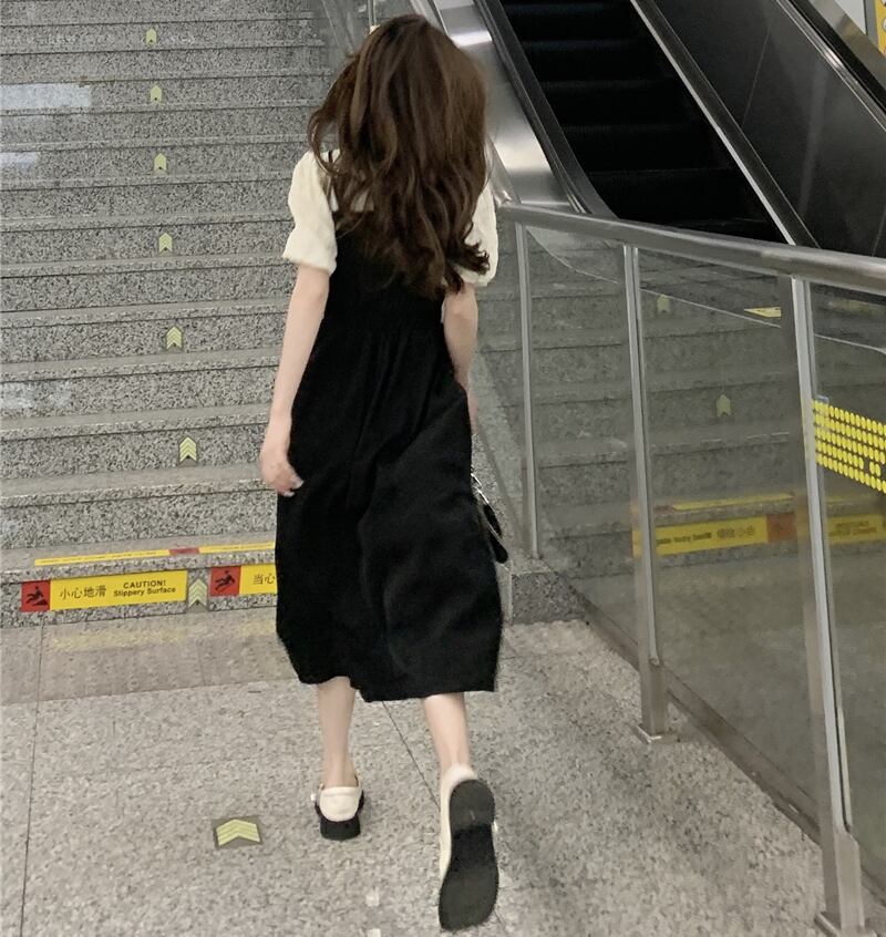 【送料無料】 レディース ワンピース Vネック レース フリル キュート ガーリー 大人かわいい シンプル スタイルアップ 体型カバー 重ね着風 ドッキング スウィート モノトーン ふんわり袖 ホワイト ブラック 白 黒 20代 30代 40代 通勤 通学 オフィス お出掛け 女子会 お呼ばれ 春夏