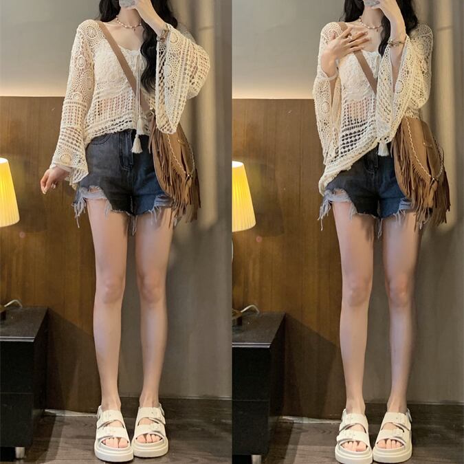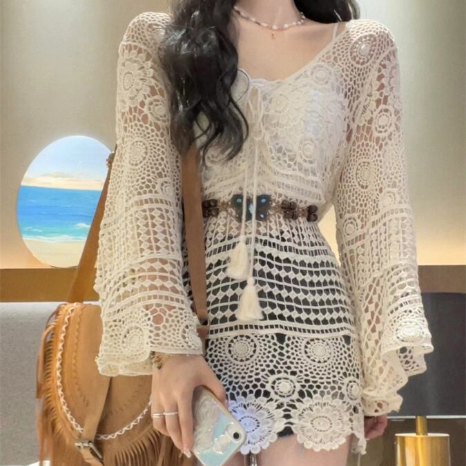 【送料無料】 レディース トップス ニット 透け感 レース編み 重ね着 カジュアル 抜け感 レジャー こなれ感 おしゃれ セレブ 長袖 ベージュ ブラック 黒 20代 30代 40代 通勤 通学 お出掛け 女子会 お呼ばれ 春夏
