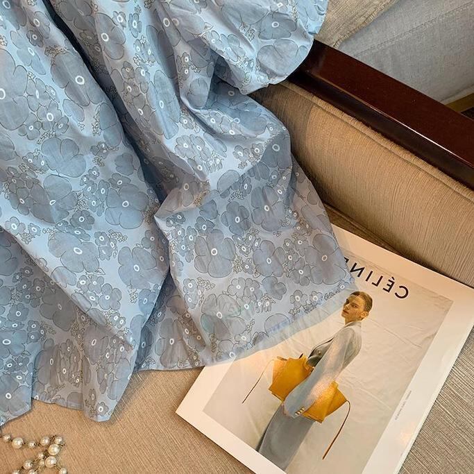 【送料無料】 レディース トップス ブラウス チュニック ふんわり袖 シック 大人かわいい シンプル 上品 体型カバー カジュアル きれいめ ギャザー こなれ感 半袖 プリント フラワー ブルー ブルーグレー 20代 30代 40代 通勤 通学 オフィス お出掛け 女子会 お呼ばれ 春夏