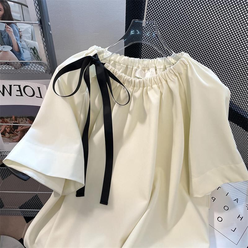 【送料無料】 レディース トップス ブラウス シンプル リボン モノトーン シンプル カジュアル 上品 体型カバー ノーブル レトロ 大人かわいい 半袖 ベージュ 20代 30代 40代 通勤 通学 オフィス お出掛け 女子会 お呼ばれ 春夏