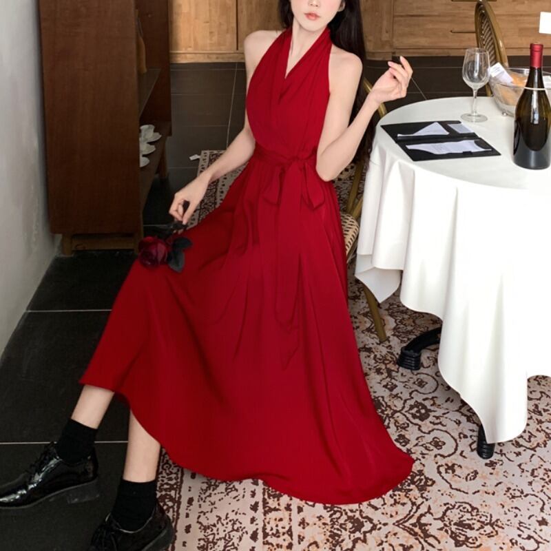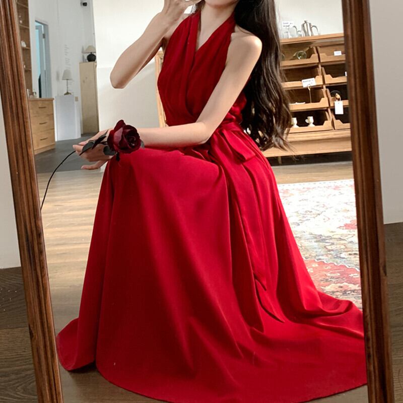 【送料無料】 レディース ドレス パーティードレス ワンピース カシュクール風 ロング丈 シック 大人かわいい 抜け感 レッド 赤 結婚式 2次会 お呼ばれ パーティー お食事会 ディナー ランチ お出かけ 春夏