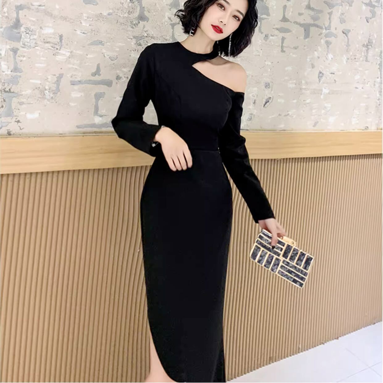 【送料無料】 レディース ドレス パーティードレス ワンピース ワンショルダー アシンメトリー シック 清楚 セクシー スッキリ 大人かわいい こなれ感 ブラック ロング丈 マキシ丈 スリット 結婚式 2次会 お呼ばれ パーティー お食事会 ディナー ランチ お出かけ 春夏秋冬