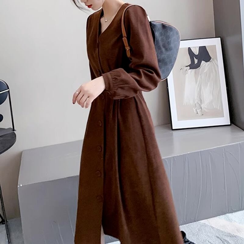 【送料無料】 レディース ワンピース ミドル丈 Aライン フレア シンプル キレイめ 上品 こなれ感 大人可愛い ヘビロテ 体型カバー スタイルアップ 長袖 ブラウン ブラック 茶 黒 20代 30代 40代 通勤 通学 オフィス お出掛け 女子会 お呼ばれ 秋冬
