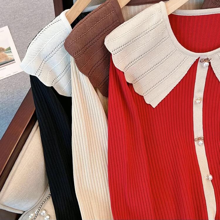 【送料無料】 レディース トップス ニット カラー切り替え キュート レトロ シンプル 上品 スウィート カジュアル キレイめ ベーシック 着回し 長袖 レッド ベージュ ブラック 赤 黒 20代 30代 40代 通勤 通学 オフィス お出掛け 女子会 お呼ばれ 秋冬
