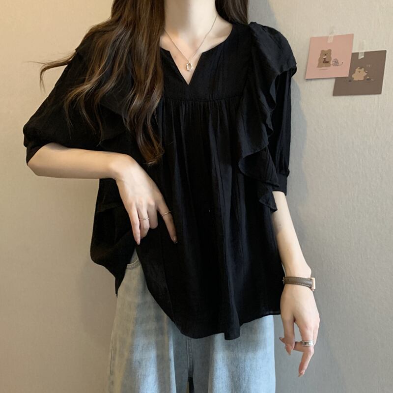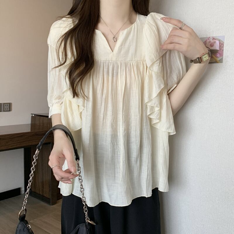 【送料無料】 レディース トップス ブラウス チュニック ギャザー 体型カバー ふんわり袖 バルーンスリーブ こなれ感 大人かわいい 二の腕カバー シンプル カジュアル 半袖 半端袖 5分袖 ブラック ベージュ 20代 30代 40代 通勤 通学 オフィス お出掛け 女子会 お呼ばれ 春夏
