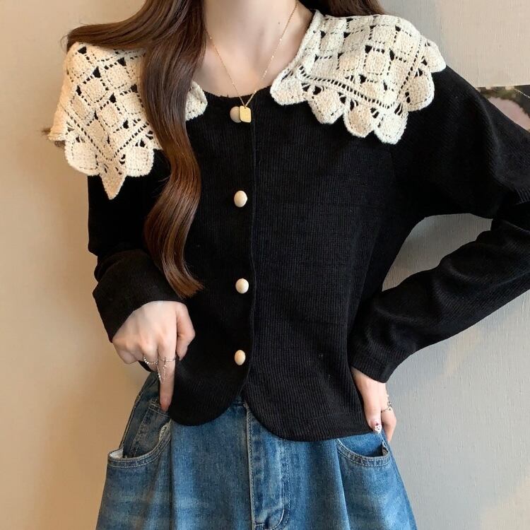 【送料無料】 レディース アウター カーディガン カーデ シンプル 上品 こなれ感 きれいめ レトロ 大人かわいい レース 長袖 レッド ブラック 赤 黒 20代 30代 40代 通勤 通学 オフィス お出掛け 女子会 お呼ばれ 春秋