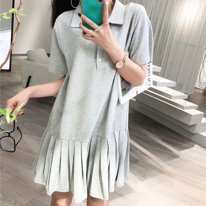 【送料無料】 レディース ワンピース ポロスタイル プリーツ ミドル丈 ミディアム丈 膝上 シンプル カジュアル 体型カバー こなれ感 半袖 グリーン グレー ブラック 緑 黒 20代 30代 40代 通勤 通学 オフィス お出掛け 女子会 お呼ばれ 春夏