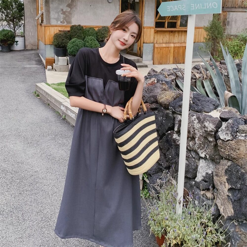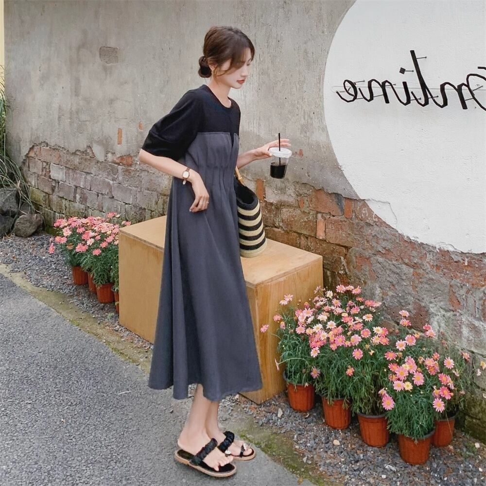 【送料無料】 レディース ワンピース ミドル丈 ミディアム丈 モノトーン カラー切り替え シンプル カジュアル こなれ感 大人可愛い 抜け感 体型カバー 半袖 ブラック グレー 黒 20代 30代 40代 通勤 通学 オフィス お出掛け 女子会 お呼ばれ 春夏