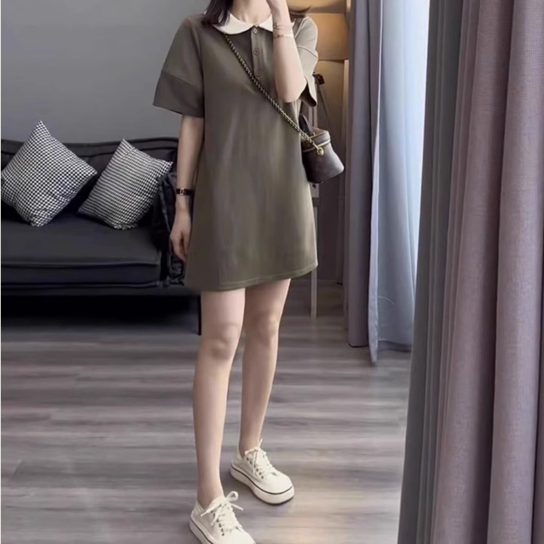 【送料無料】 レディース ワンピース ショート丈 ミニ丈 ふんわり袖 ランタンスリーブ カラー切り替え 体型カバー キュート レトロ シンプル カジュアル 大人かわいい 半袖 ネイビー カーキ 20代 30代 40代 通勤 通学 オフィス お出掛け 女子会 お呼ばれ 春夏