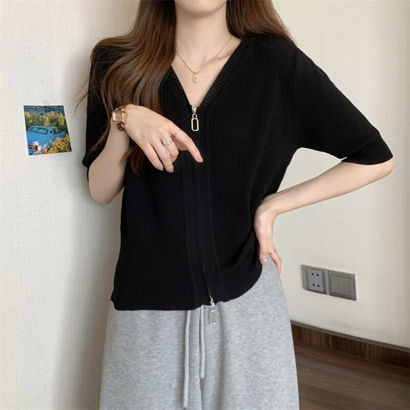 【送料無料】 レディース トップス カットソー Vネック ダブルジップ リブ シンプル カジュアル こなれ感 きれいめ ベーシック ヘビロテ 半袖 ホワイト ブラック 白 黒 20代 30代 40代 通勤 通学 オフィス お出掛け 女子会 お呼ばれ 春夏