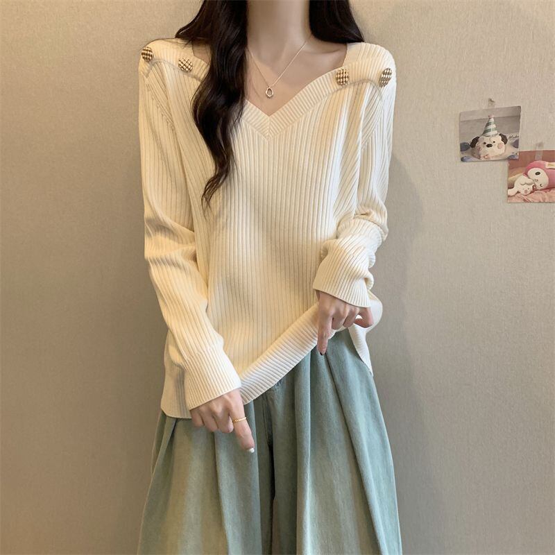 【送料無料】 レディース トップス カットソー ニット リブ Vネック シンプル カジュアル 体型カバー ゆったり シルエット こなれ感 ヘビロテ 長袖 アイボリー ブラック 黒 20代 30代 40代 通勤 通学 オフィス お出掛け 女子会 お呼ばれ 秋冬