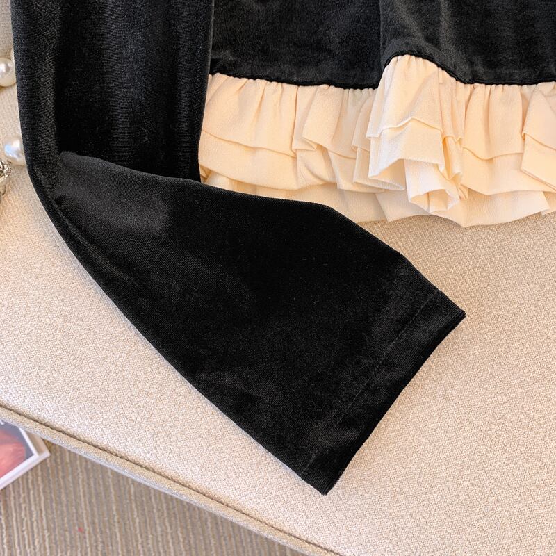 【送料無料】 レディース トップス ブラウス モノトーン クルーネック フリル ドッキング ドット キュート シンプル キレイめ カジュアル 長袖 ブラック 黒 20代 30代 40代 通勤 通学 オフィス お出掛け 女子会 お呼ばれ 秋冬