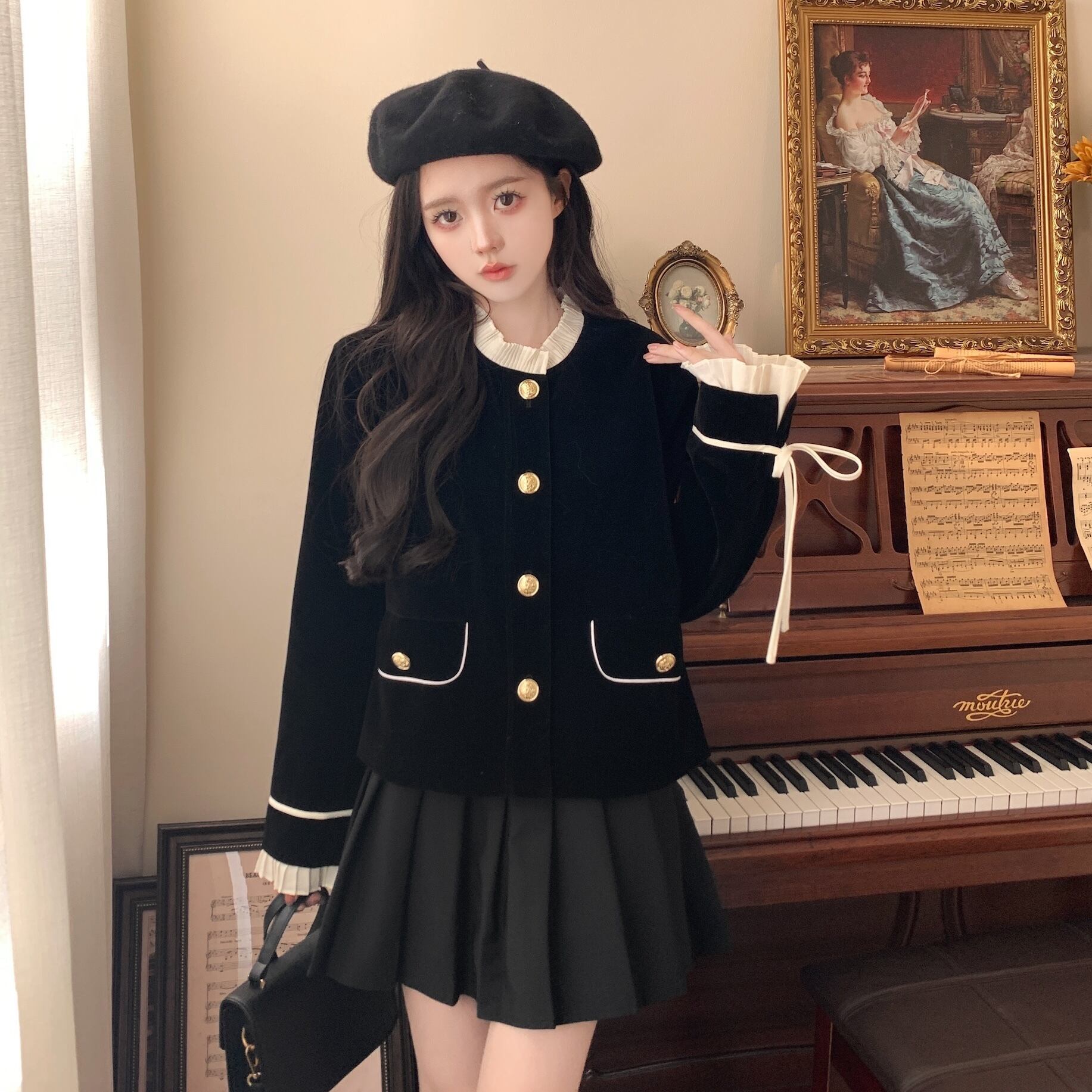 【送料無料】 レディース アウター 羽織り ジャケット モノトーン フリル リボン スウィート シンプル カジュアル キレイめ 大人かわいい 長袖 ブラック 黒 20代 30代 40代 通勤 通学 オフィス お出掛け 女子会 お呼ばれ 秋冬