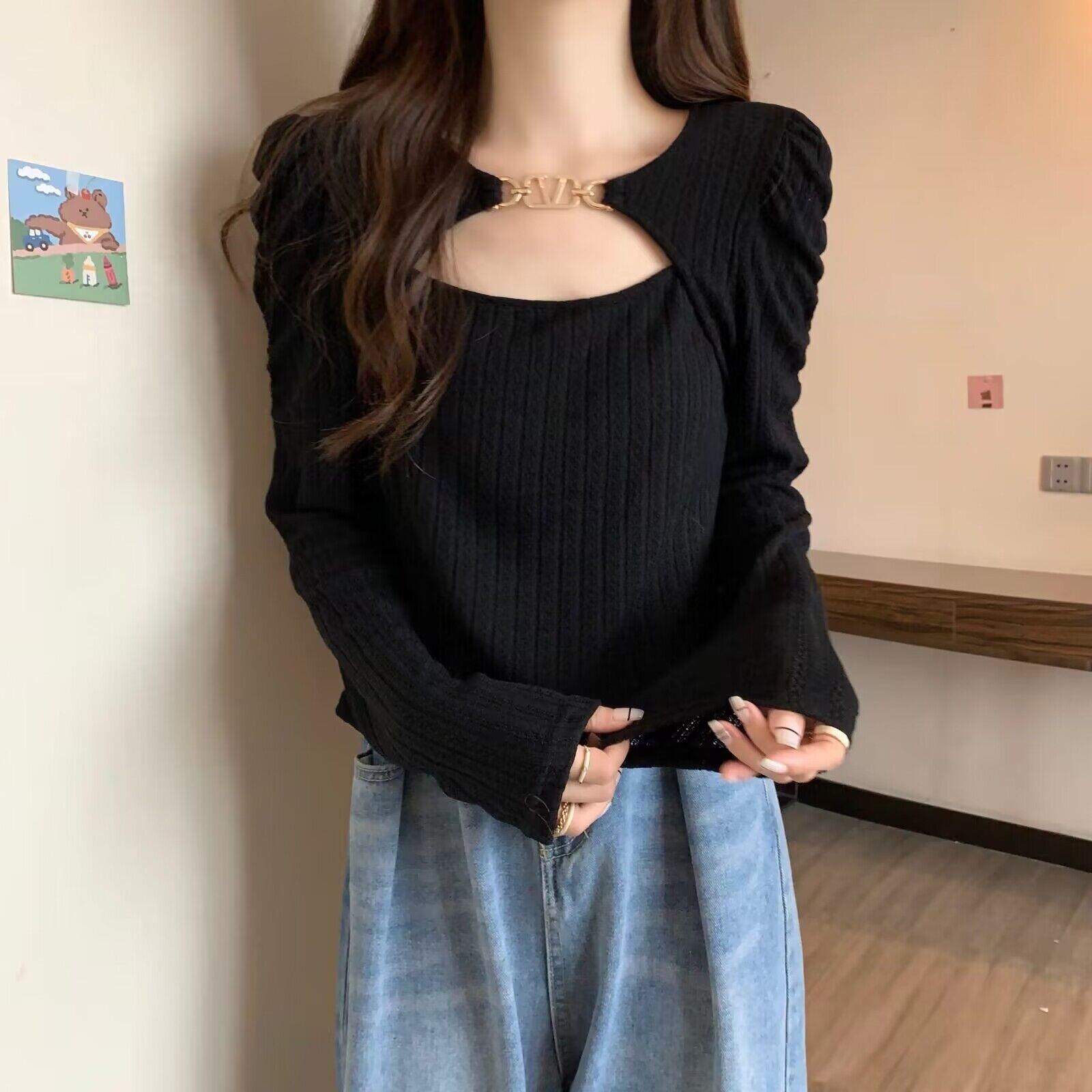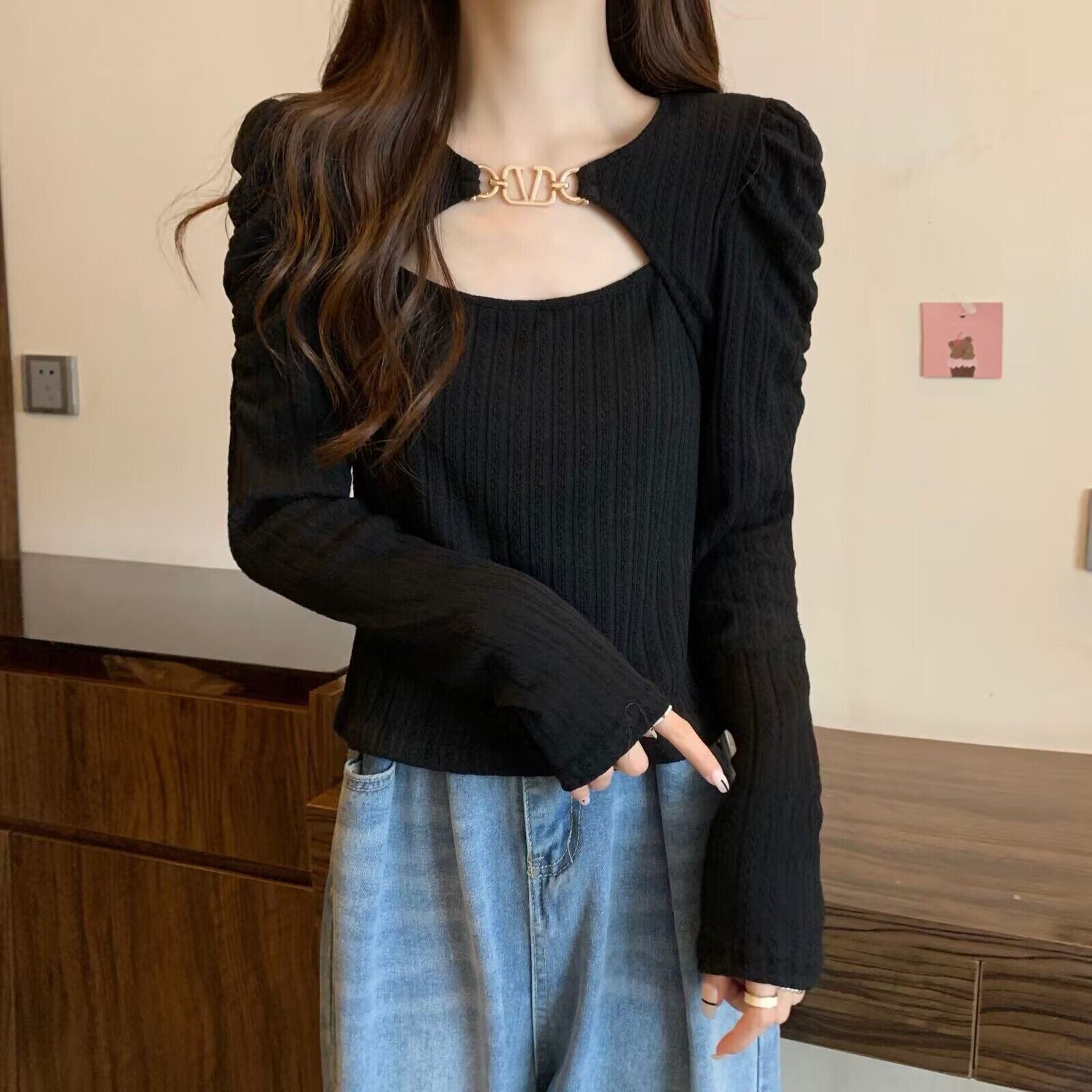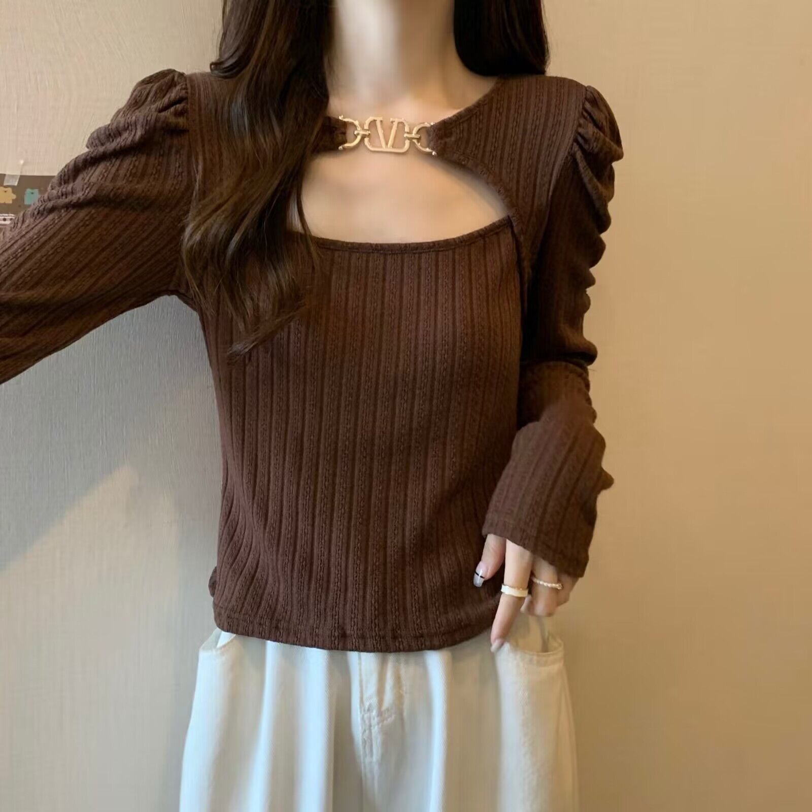 【送料無料】 レディース トップス カットソー デザインT こなれ感 大人かわいい シンプル カジュアル 抜け感 フェイクレイヤード リブ ゴールド 長袖 ブラウン ブラック 茶 黒 20代 30代 40代 通勤 通学 オフィス お出掛け 女子会 お呼ばれ 秋冬