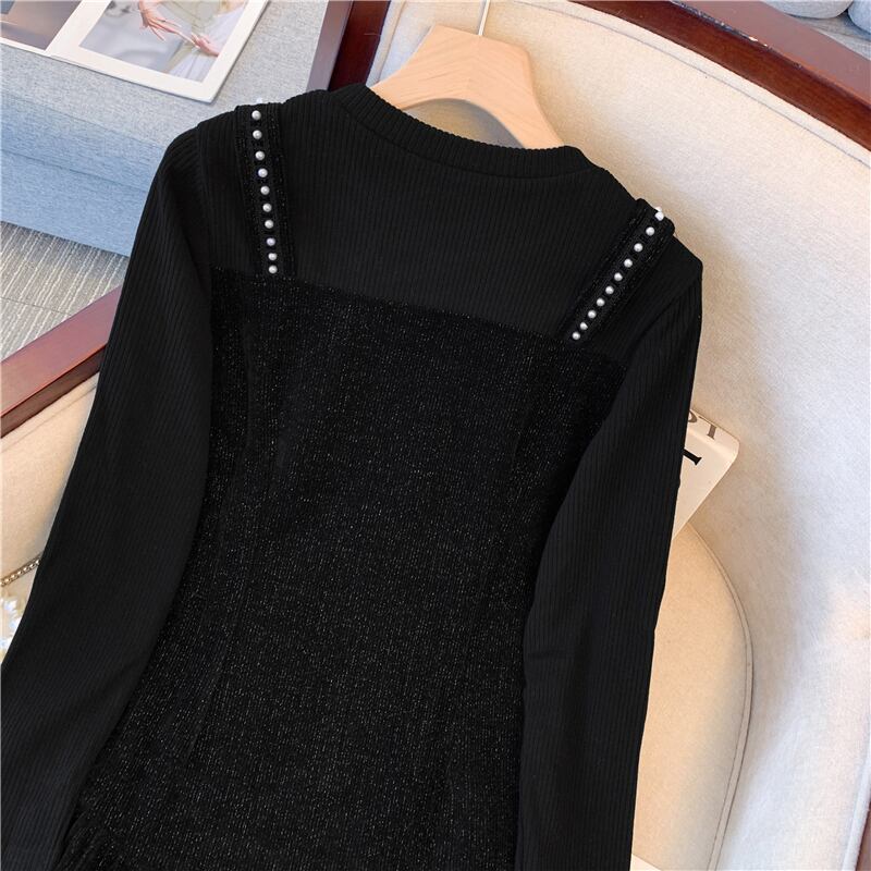 【送料無料】 レディース ワンピース Aライン ミドル丈 ミディアム丈 クルーネック フェイクレイヤード 重ね着風 こなれ感 大人かわいい シンプル カジュアル きれいめ 長袖 ブラック 黒 20代 30代 40代 通勤 通学 オフィス お出掛け 女子会 お呼ばれ 秋冬