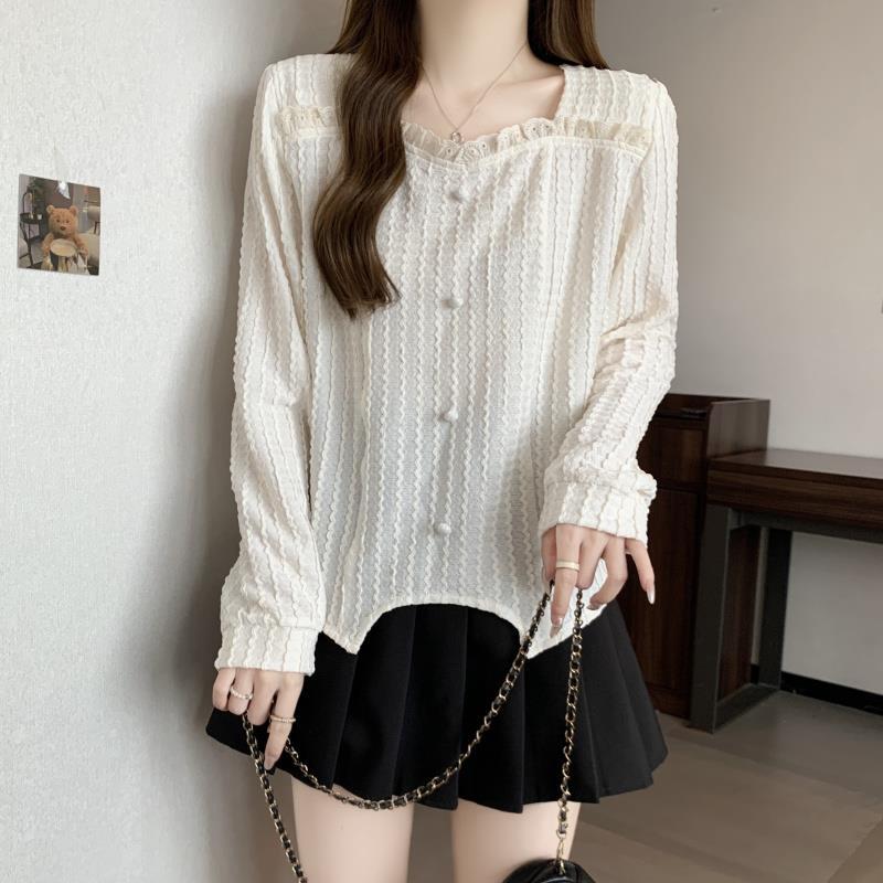 【送料無料】 レディース トップス カットソー ブラウス スクエアネック シンプル カジュアル こなれ感 ゆったり 体型カバー 大人かわいい 長袖 アイボリー ブラック 黒 20代 30代 40代 通勤 通学 オフィス お出掛け 女子会 お呼ばれ 秋冬